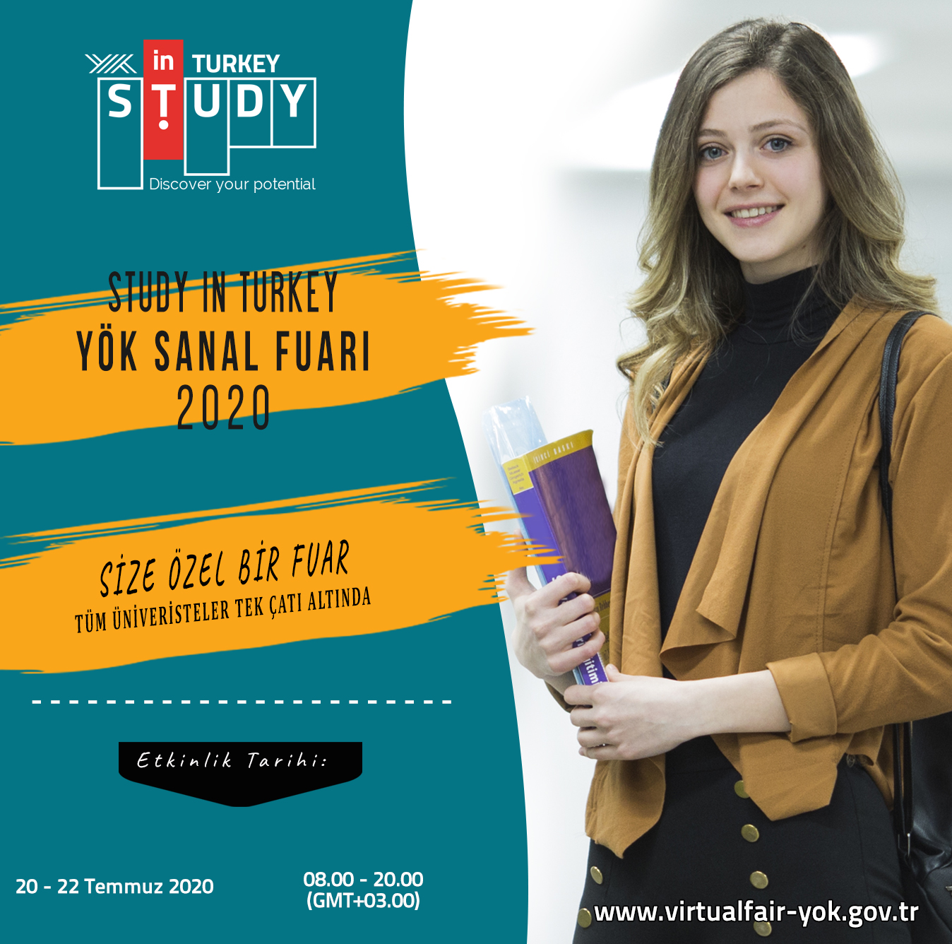 20-22 Temmuz 2020 tarihlerinde Türkiye saatiyle 08.00 ile 20.00 saatleri arasında küresel ölçekte “www.virtualfair-yok.gov.tr” internet adresi üzerinden gerçekleştirilecek olan bahsekonu Fuara ilişkin tanıtıcı görsel ekte sunulmuştur.